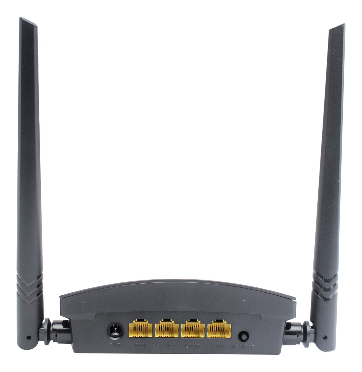Diseñado con un elegante color negro, el modelo DS-3WR3N cuenta con dos antenas externas que optimizan la cobertura y la señal, asegurando que cada rincón de su espacio esté conectado. Además, dispone de cuatro puertos LAN, lo que permite conectar múltiples dispositivos de forma simultánea, ideal para familias o grupos de trabajo.