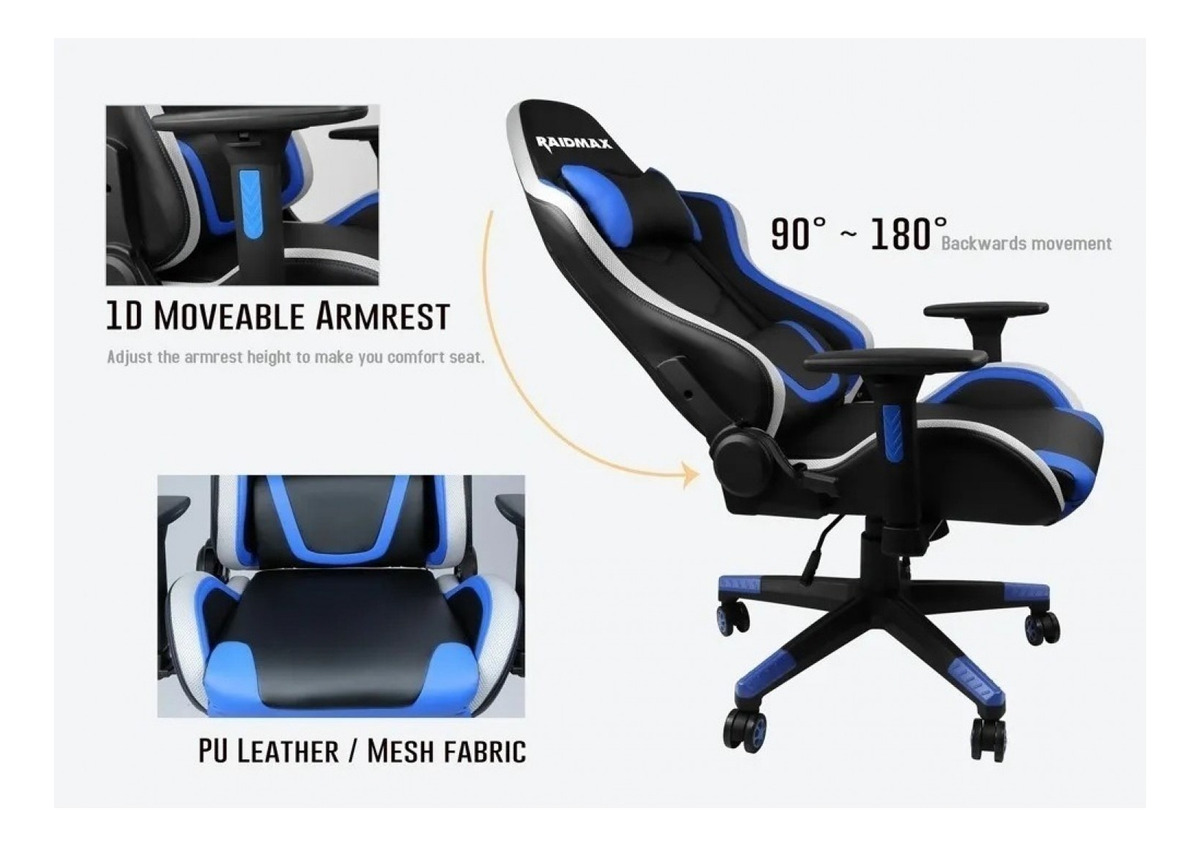 Con altura regulable SíMarca RaidmaxEs ergonómica SíEs giratoria SíModelo DK925Unidades por pack 1Material del tapizado Cuero sintéticoCon apoyabrazos SíCon respaldo reclinable SíCon ruedas Sí