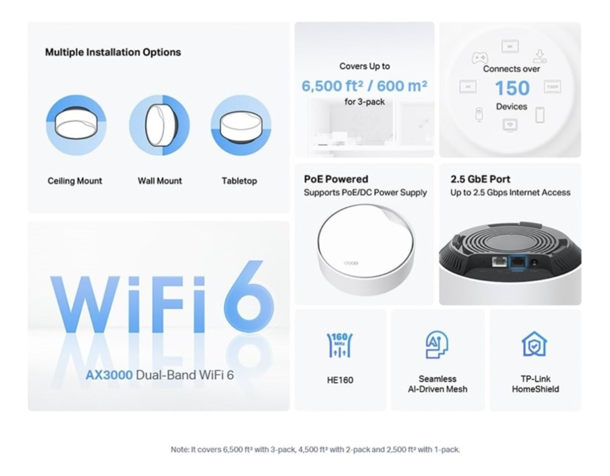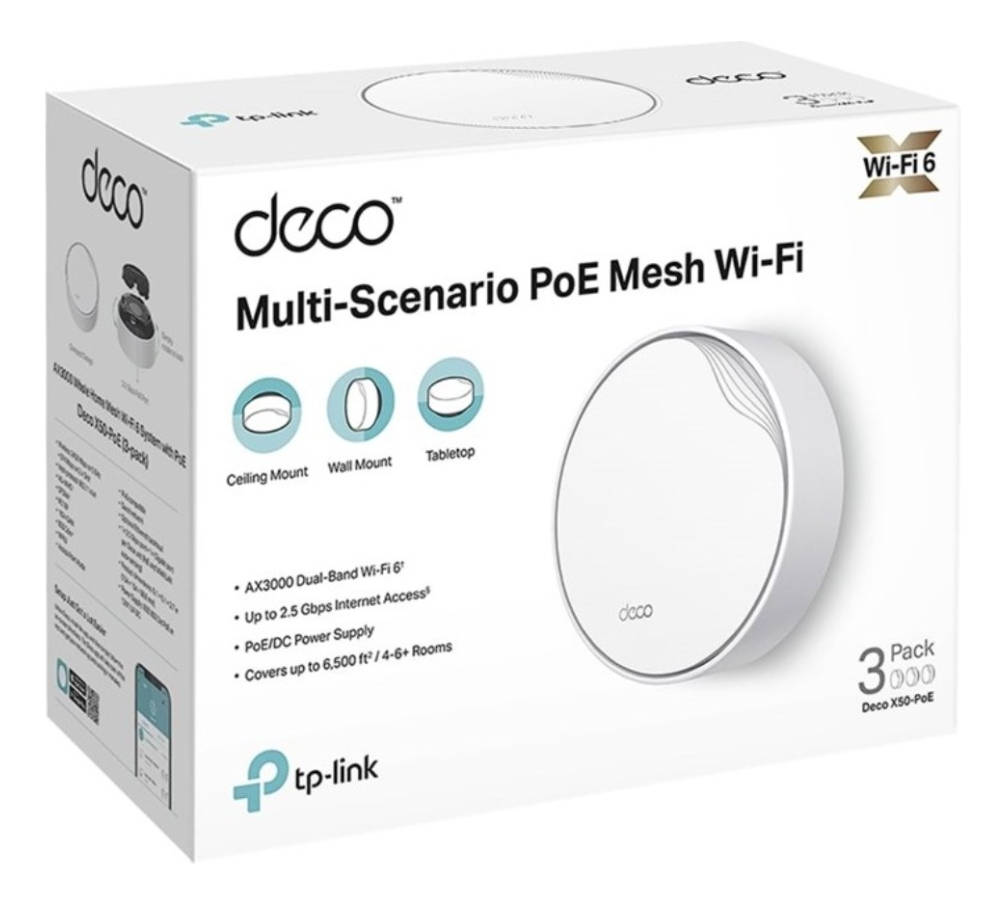 Ideal para aquellos que buscan una solución de conectividad potente y flexible, el SISTEMA MESH PACK X 3 TP-LINK AX3000 WIFI DECO X50 POE es la elección perfecta para llevar tu experiencia de internet al siguiente nivel.