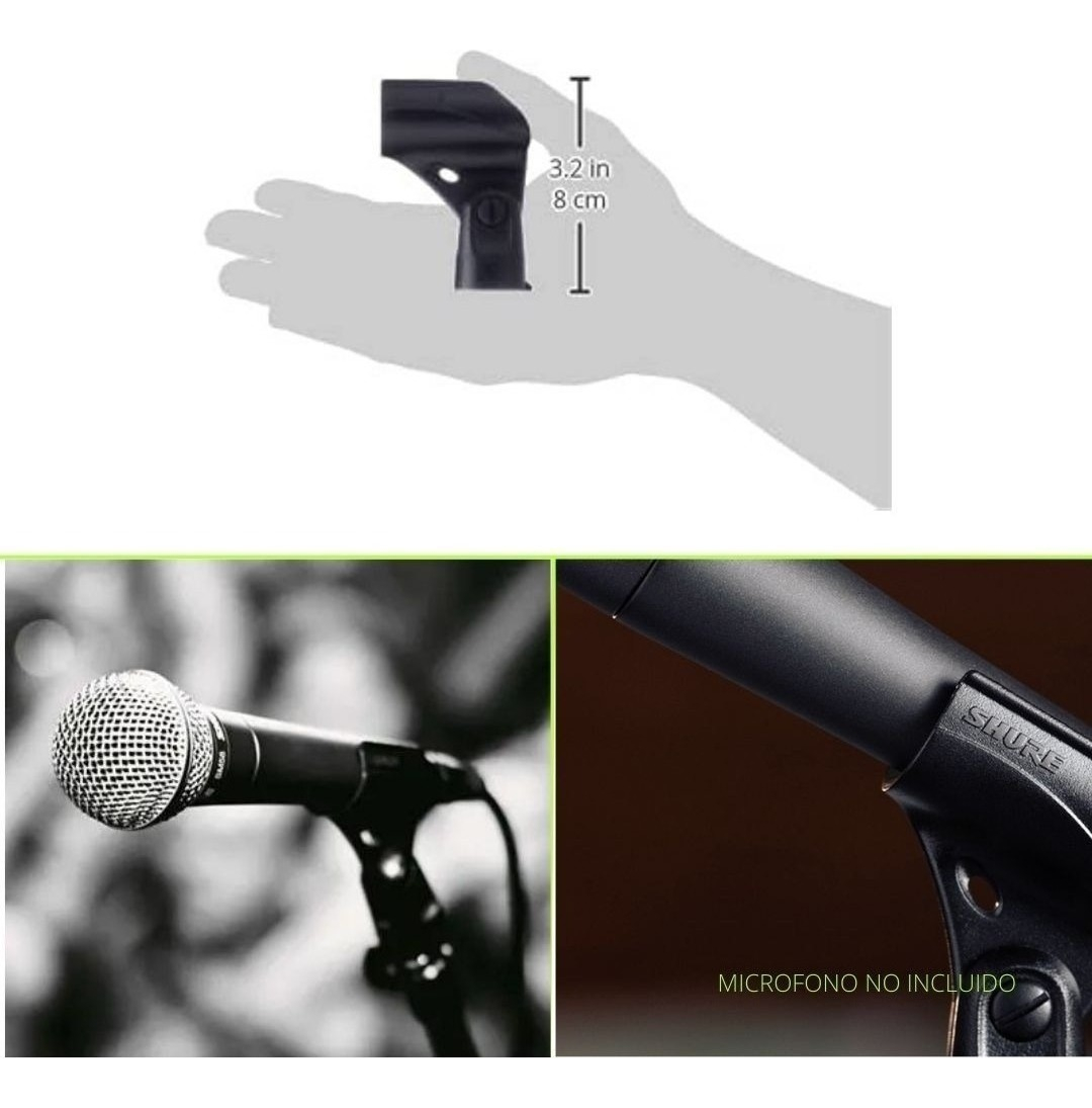 Pinza para montar micrófonos con un mango de 19 mm o mayor diámetro en soportes de micrófono estándar.