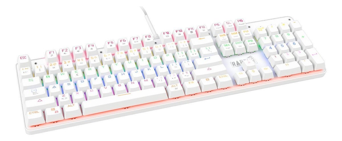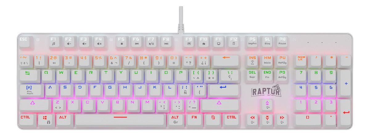 Características adicionales: Teclas anti-ghosting, patas antideslizantes, teclas de doble inyección de color blanco, y 17 efectos de iluminación LED dinámicos y ajustables.