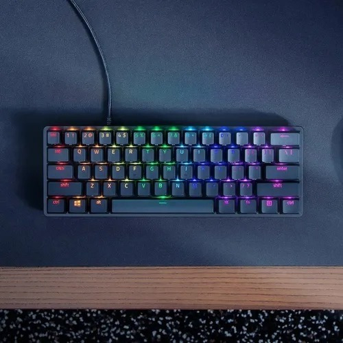 TIPO DE SWITCH Switch óptico con sonido de click Razerâ„¢ KEY FEEL Ligera y clicky DIMENSIONES 60% LIGHTING Retroiluminación Chroma con 16,8 millones de opciones de color personalizables. APOYO PARA LA MUÑECA Ninguna ONBOARD MEMORY Almacenamiento hÃbrido integrado con capacidad para hasta cinco perfiles de atajos de teclado TECLAS MULTIMEDIA Ninguna PASSTHROUGH Ninguna CONECTIVIDAD Por…