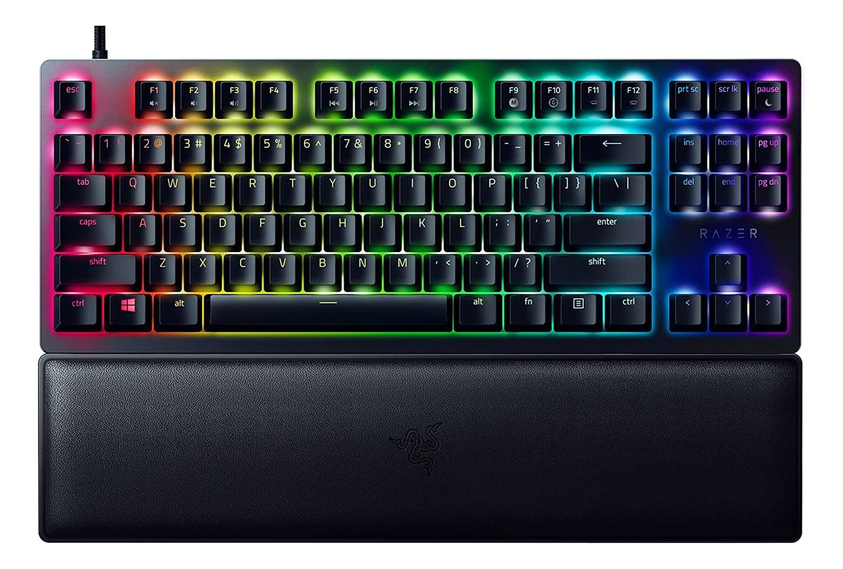 tributosSwitch Type Clicky Optical SwitchMedia Keys NoneLighting RGB customizable backlighting with 16.8 million color optionsWrist Rest YesOnboard Memory Hybrid onboard storage ? up to 5 keybinding profilesPassthrough NoneLayout USKey Feel Light and ClickyAPPROXIMATE SIZES Tenkeyless
