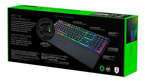 Ideal para gamers de todos los niveles, este teclado combina estilo y rendimiento en un solo dispositivo. Experimenta el poder de la retroiluminación personalizable y optimiza tus habilidades de juego con el teclado Razer Ornata V3, un producto pensado para potenciar todas tus habilidades. Cada detalle ha sido diseñado para ofrecerte una experiencia única y envolvente.