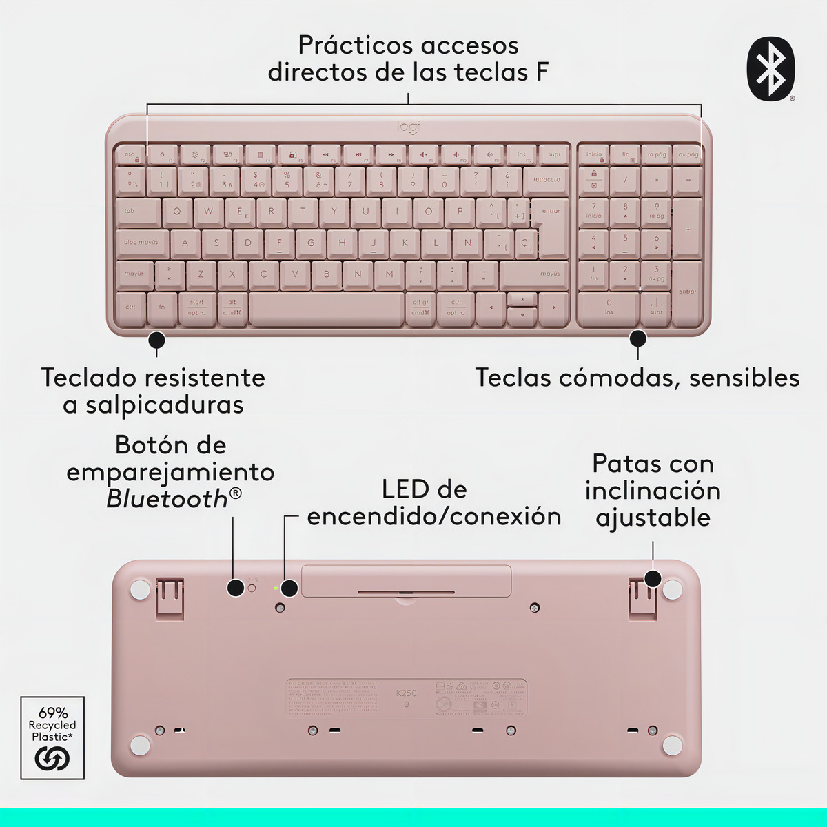• Hecho de manera responsable: Diseñado para la durabilidad, las piezas de plástico del K250 incluyen un mínimo del 64 % de plástico reciclado para soportar el uso diario.