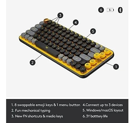 4 teclas de accesos directos de emojis (+4 teclas de emojis adicionales para intercambio), 1 tecla de menú de emojis