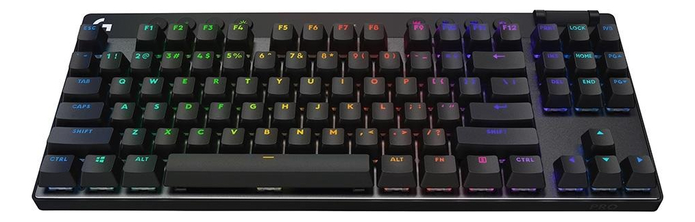 Este teclado inalámbrico para jugadores está equipado con un control del modo de juego, teclas PTB de doble moldura, diseños de teclado estándar para mayor compatibilidad y opciones de conectividad Lightspeed, Bluetooth y USB.