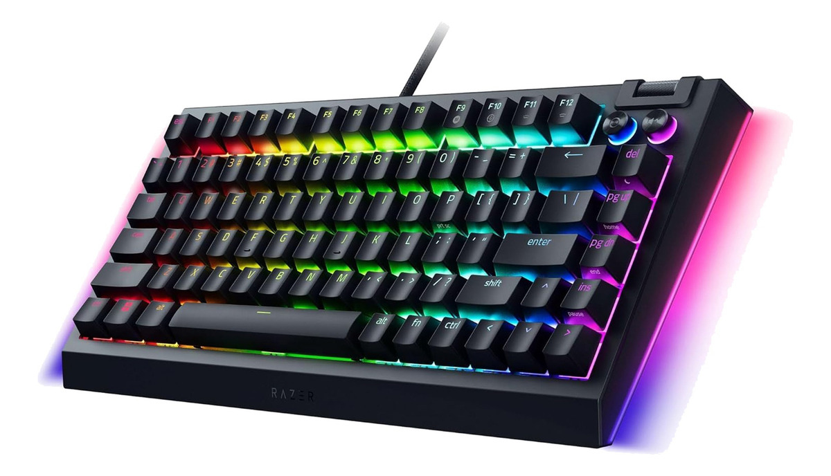 Tipo de interruptor Interruptores mecánicos Razer™ (táctiles) Sensación clave Táctil y silencioso Tamaño aproximado 75% con fila de función y teclas de flecha Iluminación Razer Chroma™ RGB Reposamuñecas Sí, piel sintética de felpa magnética Memoria integrada Almacenamiento híbrido integrado: hasta 5 perfiles Teclas multimedia Rodillo multimedia con 2 botones multimedia dedicados Paso a través Ninguno…
