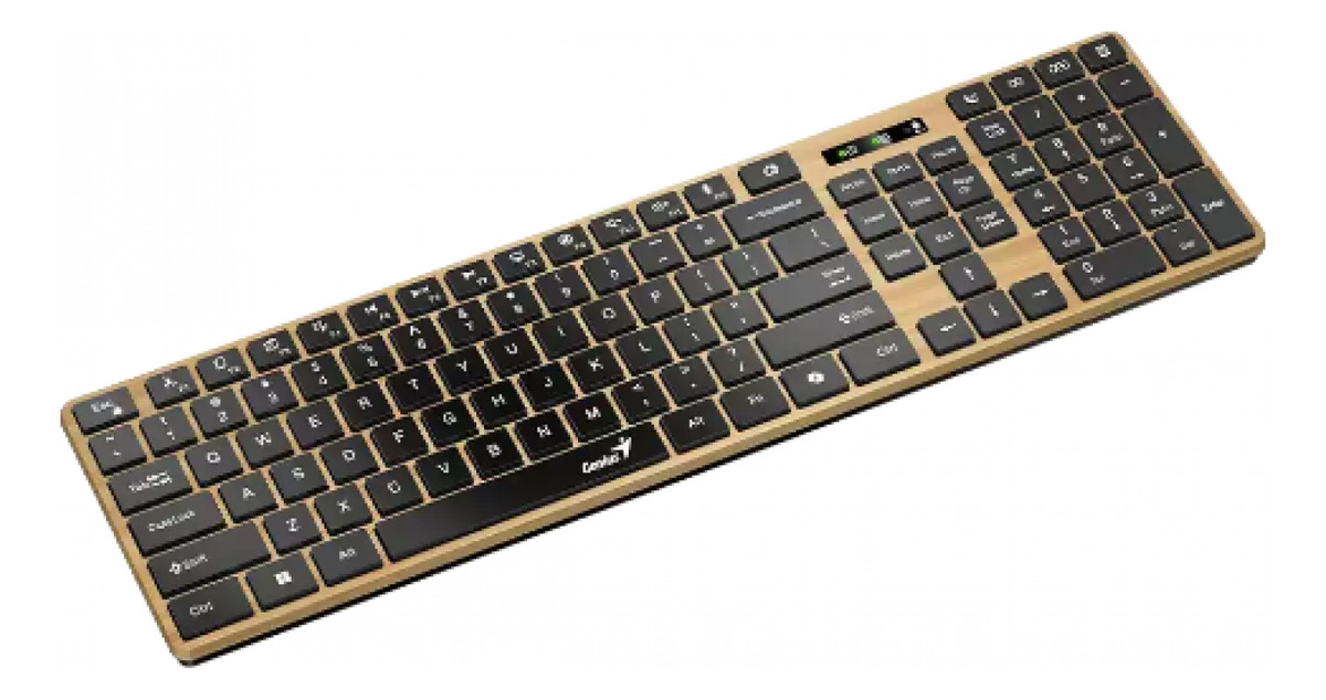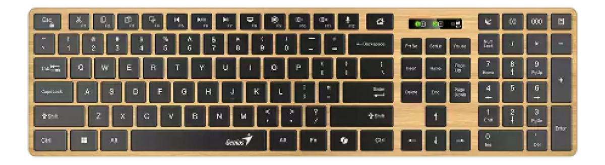 El teclado wireless Genius SlimStar 7250BT AI Pine Wood es la opción ideal para quienes buscan un diseño elegante y funcional. Con un layout QWERTY y un tamaño full size, este teclado ofrece comodidad y eficiencia en cada pulsación. Su tecnología de switch de membrana proporciona una experiencia de escritura suave y silenciosa, perfecta para largas jornadas de trabajo o estudio.