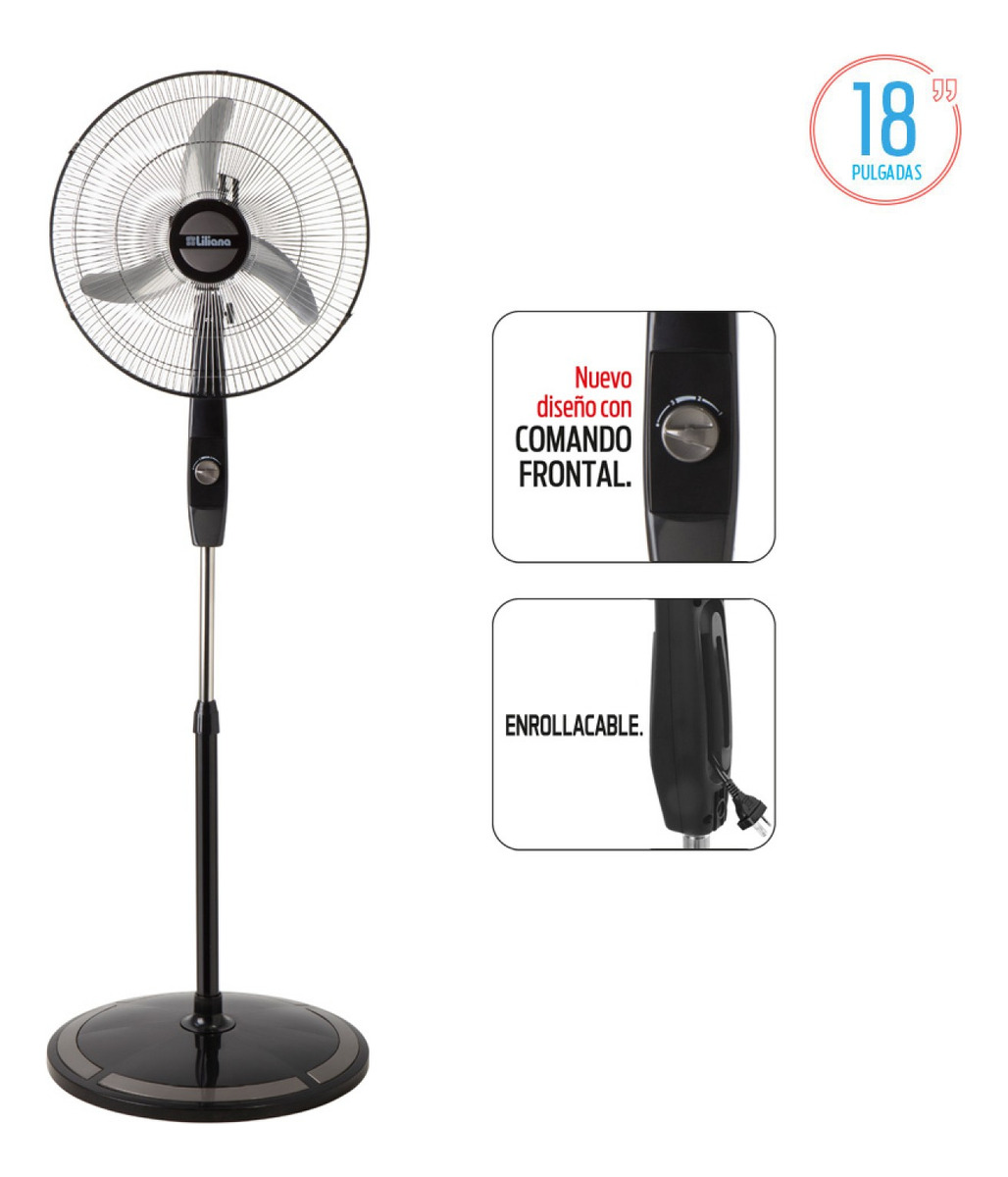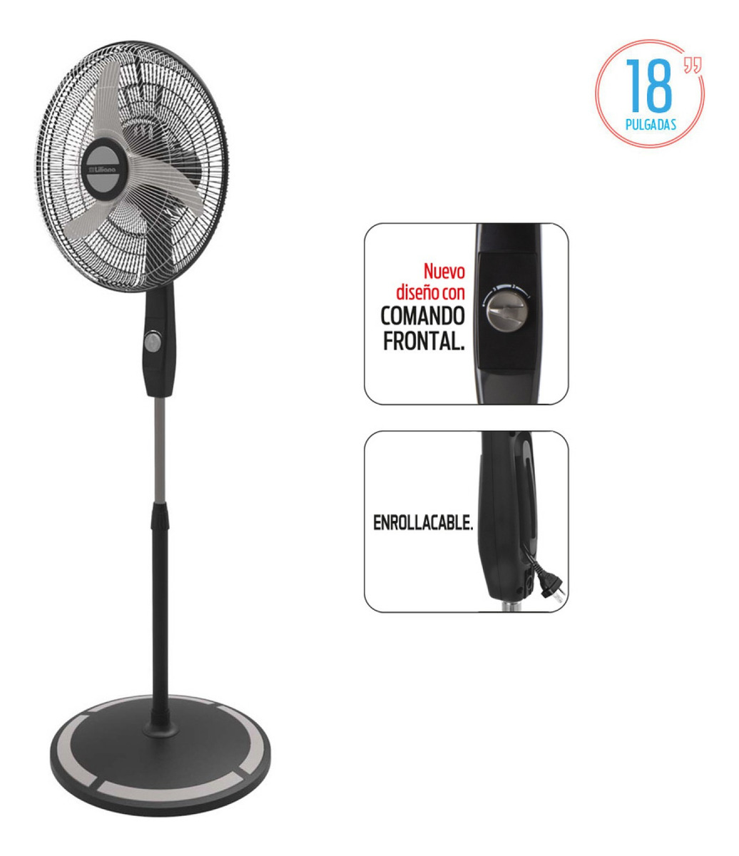 Parrilla cromada Potencia 75 watts. Cabezal oscilante y reclinable Barral telescópico metálico de 1,70 m. Base redonda velocidades. 3 Diámetro 18? Medidas 52,4x16x75,6 cm.