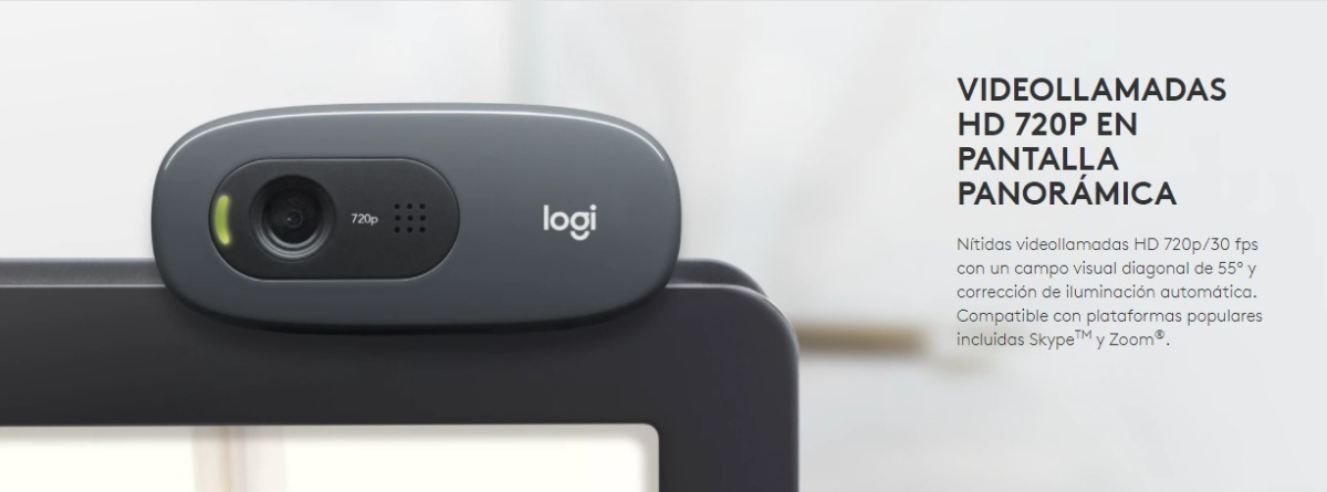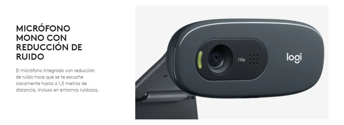 Descripción MÁS SERVICIOS DIMENSIONES Dimensiones con clip de montaje acoplado Altura: 72,91 mm Ancho: 31,91 mm Profundidad: 66,64 mm Longitud del cable: 1,5 m Peso: 75 g REQUISITOS DEL SISTEMA Compatible con Windows® 7 o posterior macOS 10.10 o posterior Chrome OS™ Puerto USB-A Funciona con plataformas populares para videollamadas ESPECIFICACIONES TÉCNICAS Resolución máxima: 720p/30…